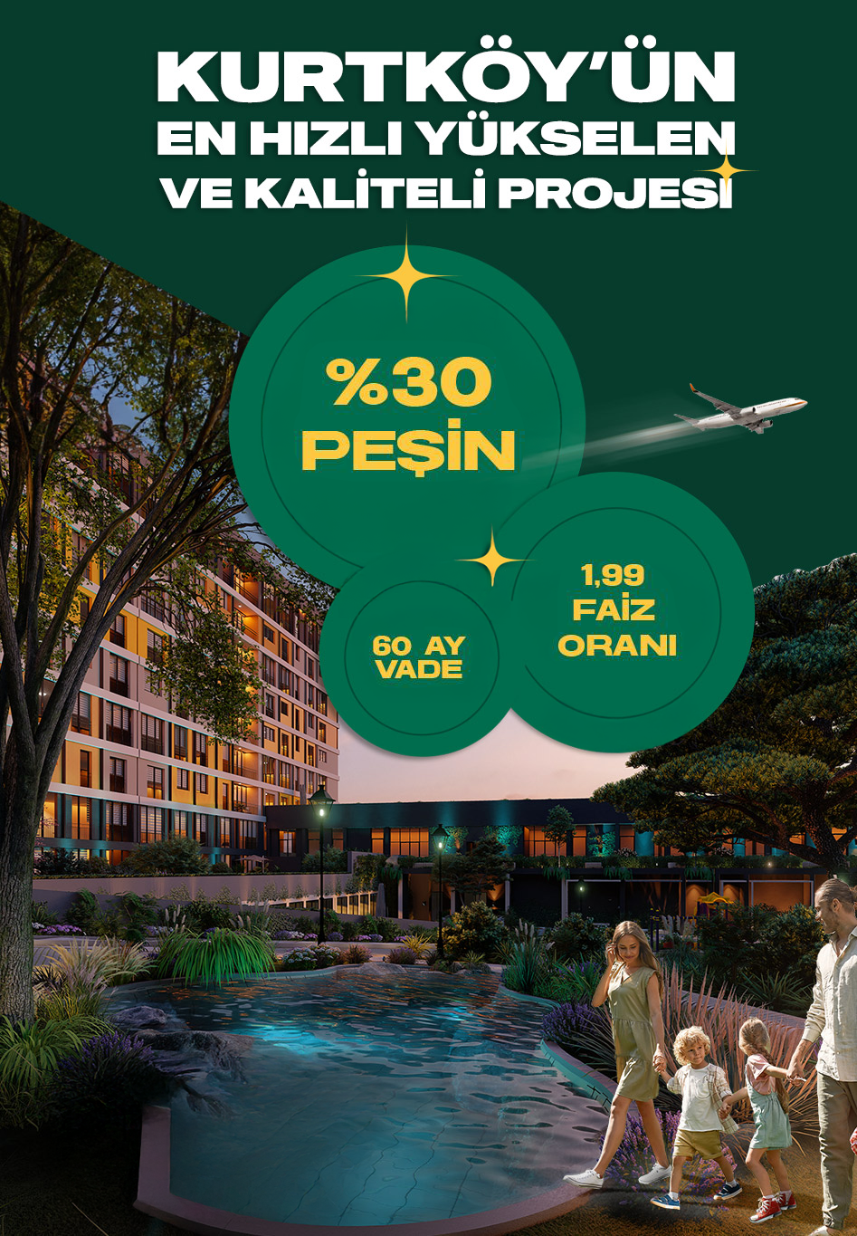 Siz de ailenizle beraber şehrin gürültüsünden uzak ve doğal bir bahçede vakit geçirmek istemez misiniz? Bu Hayat’ta bu mümkün! Şehrin merkezinde doğaya dokunmak, kapınızı açtığınızda kesilmiş çimlerin kokusunu duymak herkese mutluluk verir. Bu Hayat evlerinin tam ortasında bulunan ve tamamen doğal topraktan oluşan peyzaj alanında doğayı hemen yanınızda hissedeceksiniz. Aynı zamanda evinize 1 dakika mesafede olan Kurtköy Şehir Parkında aileniz ve sevdiklerinizle beraber yeşilin tadını çıkaracaksınız.