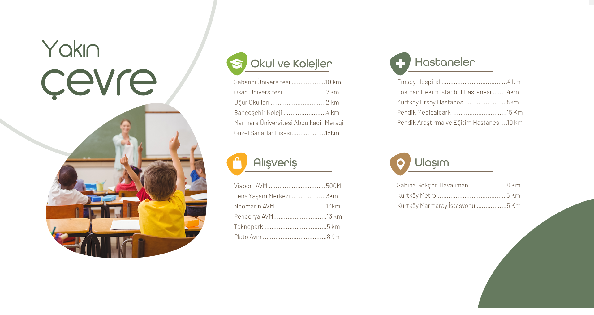 Şehrin içinde olsanız da ailenizle beraber doğayla iç içe, yemyeşil bahçede keyifli anlar yaşayabileceğiniz, her gün evinize dönerken ilk günkü heyecanı yaşayacağınız ve sevdiklerinizle mutlu olacağınız bir yer hayal ettik. Bu hayallerin sonunda da Bu Hayat’ evlerine hayat verdik. Bu Hayat evlerinin Sabiha Gökçen havalimanına yakın olması seyahatlerinizde size kolaylık sağlarken aynı zamanda evinize bir adım uzaklıktaki İstanbul’un en büyük outlet avm’si ve restoranlara yakınlığıyla ailenizle birlikte keyifli vakitler geçirebilirsiniz.